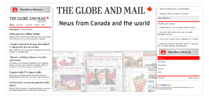 The Globe and Mail mobile site: http://m.theglobeandmail.com/