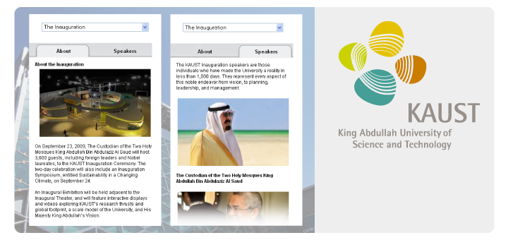 Fleishman-Hillard recently appointed Mobiletech to partner in the custom development of a mobile site for the King Abdullah University of Science and Technology (KAUST), in conjunction with the KAUST Inauguration Ceremony on September 23rd 2009. The Fleishman-Hillard team was responsible for the concept, strategy, and design of the site, and Mobiletech turned the designs into the most distinguished mobile university site live today.